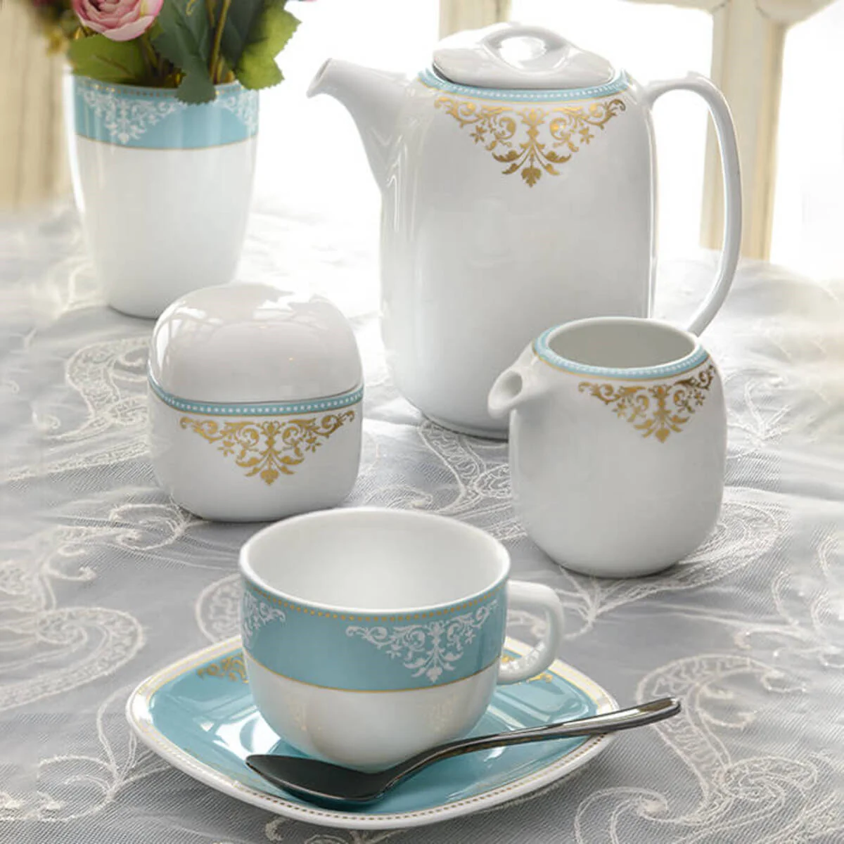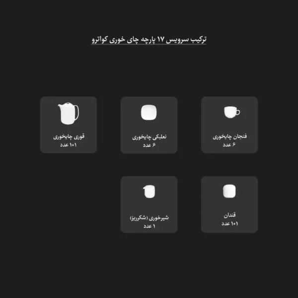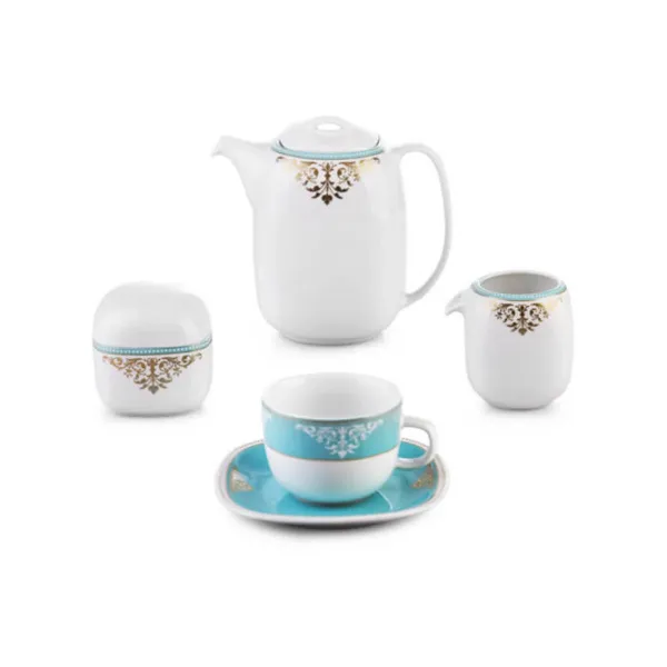چینی زرین سرویس 17 پارچه چای خوری کواترو طرح آرمیتاژ فیروزه ای (توقف تولید)*