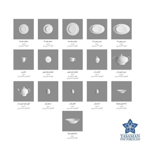 سرویس چینی سمن یاسمن ایتالیا اف 12 نفره 76 پارچه