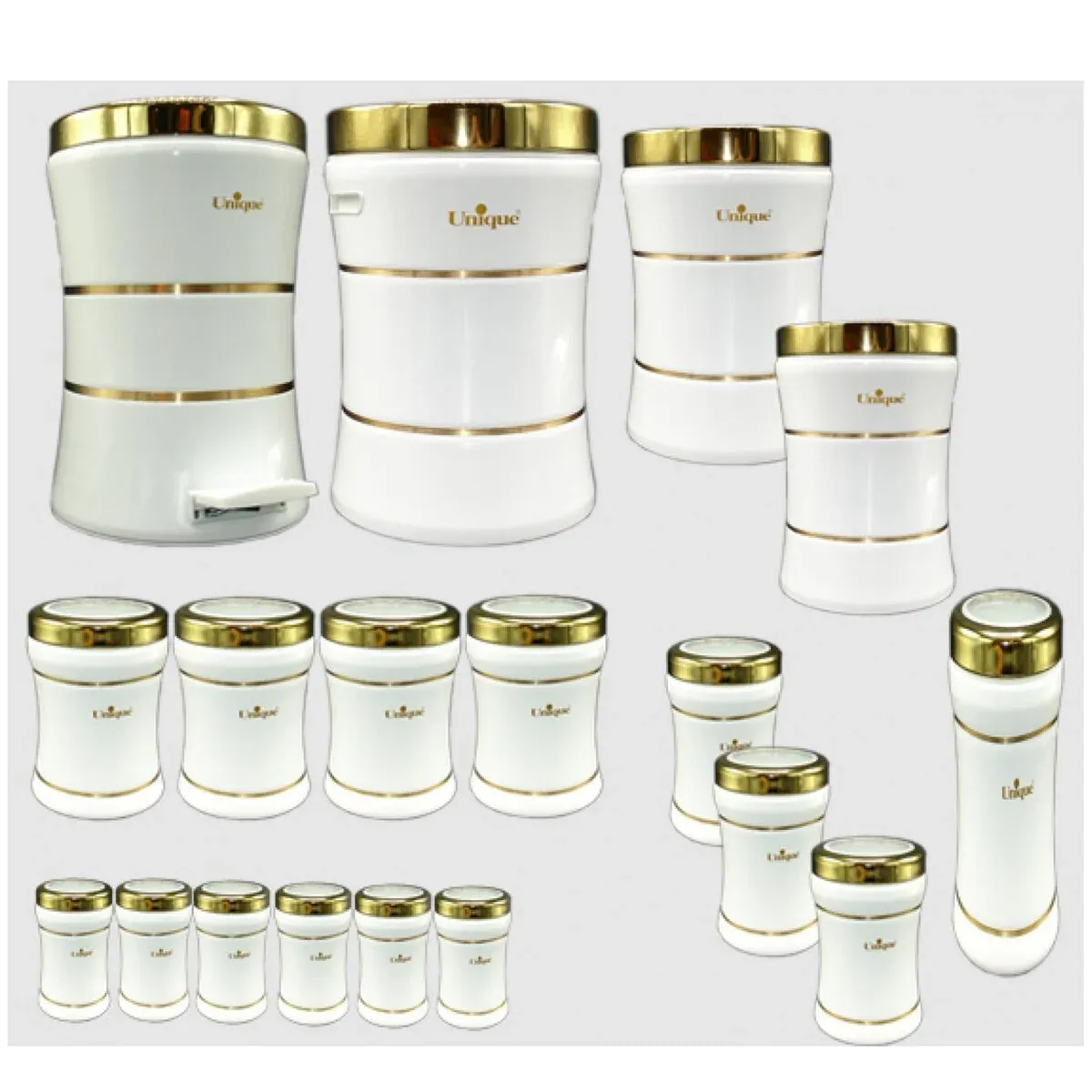 سرویس 18 پارچه آشپزخانه یونیک سفید با درب طلایی