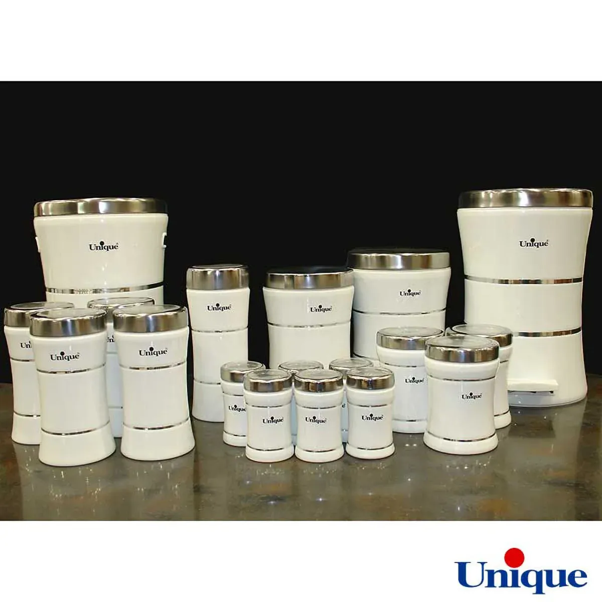 سرویس 18 پارچه کمر باریک خطی سفید استیل یونیک UN-4692