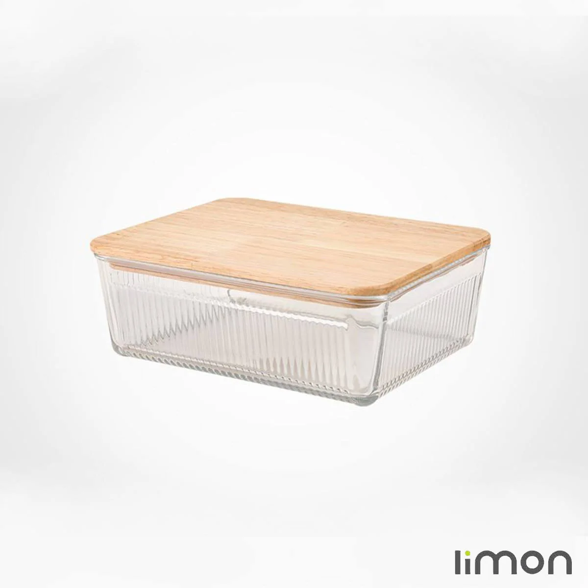 ظرف شیشه ای لیمون کد 2191 با ظاهری زیبا و درب چوبی است. حجم این ظرف شیشه ای 1.1 لیتر است و بر روی بدنه شیشه ای آن شیارهای به صورت موازی قرار گرفته است. قالب این ظرف به صورت مستطیل می باشد که گوشه های آن کمی گرد است. درب چوبی برای جلوگیری از ورود هوا یا ریختن مواد از درب، دارای یک واشر پلاستیکی در اطراف خود است که به طور کامل بر روی بدنه کیپ می شود و به همین دلیل می توان از آن برای حمل غذا نیز استفاده کرد. جنس چوب این ظرف بسیار مرغوب بوده و امکان شستشو نیز دارد.