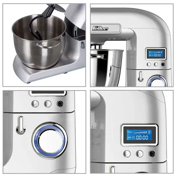 ظرفیت کاسه همزن این دستگاه ۵.۵ لیتر است که برای تهیه مقادیر زیاد مواد غذایی مناسب است.