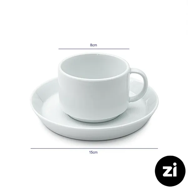 فنجان و نعلبکی چای خوری چینی زرین ZI فرم اس سفید 2 پارچه