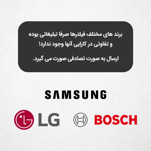 آرم برند یخچال روی فیلترها صرفا تبلیغاتی بوده و تفاوتی در محتوای آن ندارد (هنگام ارسال بصورت تصادفی ارسال خواهد شد)
