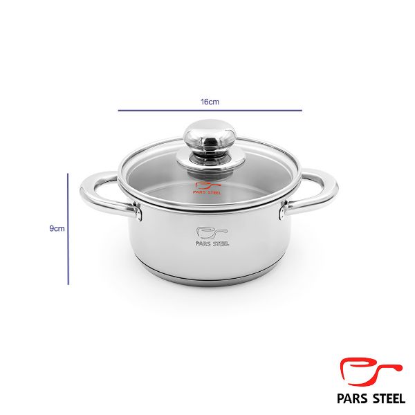 قابلمه پارس استیل کف سه لایه درب پیرکس سایز 16