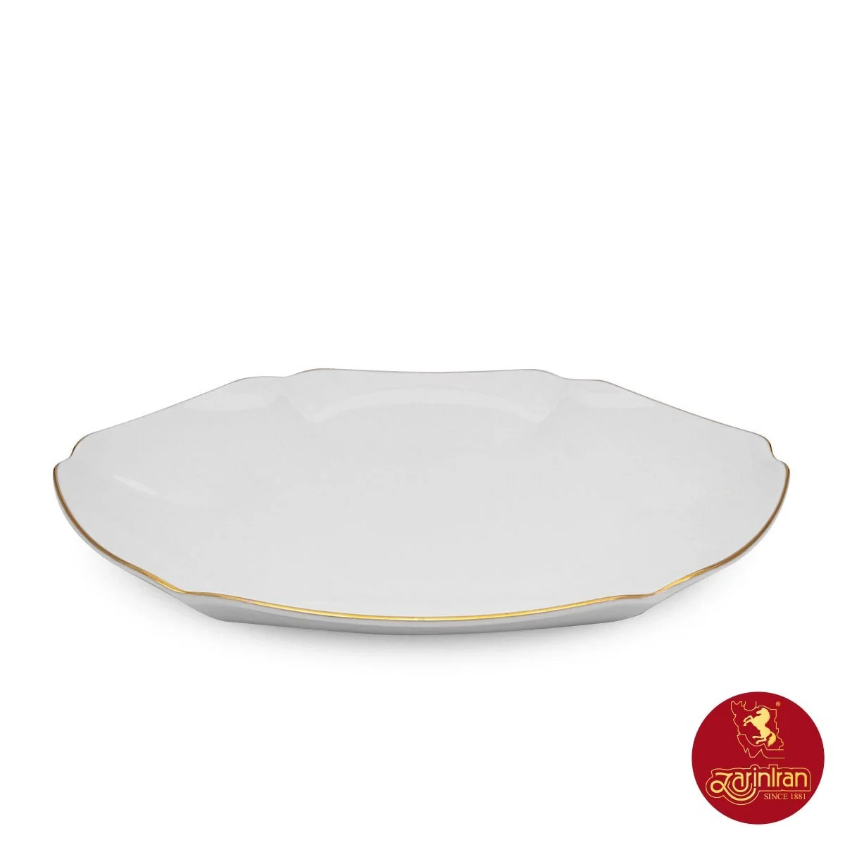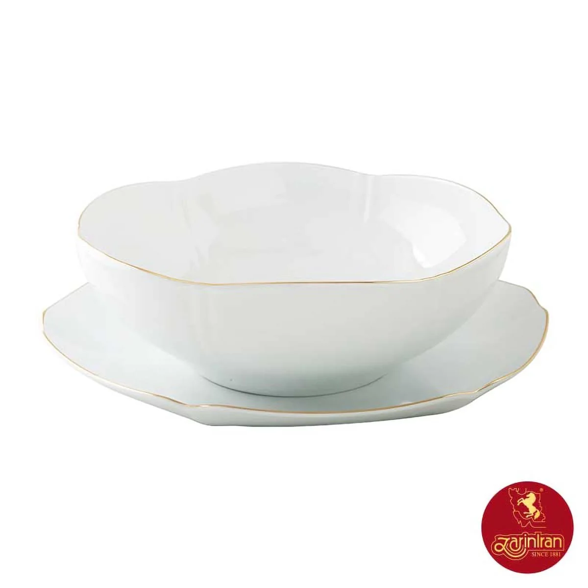 قاب و قدح زرین لب طلایی همانند دیگر ظروف چینی زرین از بادوام ترین جنس چینی در دنیا تولید شده است، به همین دلیل از دوام بالایی برخوردار است و می تواند برای سالیان طولانی به عنوان یک ظرف کاربردی یا تزیئنی مورد استفاده قرار گیرد. طرح زرین لب طلایی همان طور که از نام آن نیز پیداست، طرحی بسیار ساده و شیک است و تنها از یک نوار طلایی رنگ بر روی لبه قاب و قدح تشکیل شده است. قاب این کاسه چینی به قطر 38 سانتی متر و قدح آن به قطر 31.5 سانتی است. طرح زرین لب طلایی با سفیدی و شفافیت چینی زرین ترکیب زیبا و چشمگیری را ایجاد کرده است