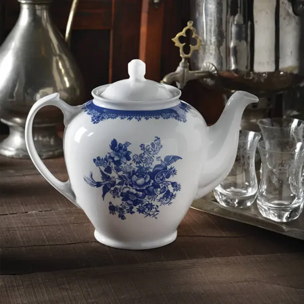 قوری چینی زرین هیئتی طرح فلورانس سرمه ای (سایز بزرگ)