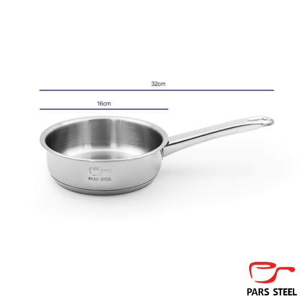 ماهیتابه سایز ۱۶ تک دسته فلزی بلند پارس استیل (کف سه لایه)