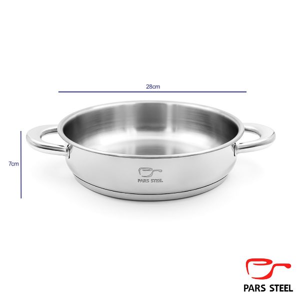 ماهیتابه سایز ۲۸ دو دسته فلزی کوتاه پارس استیل (کف سه لایه)