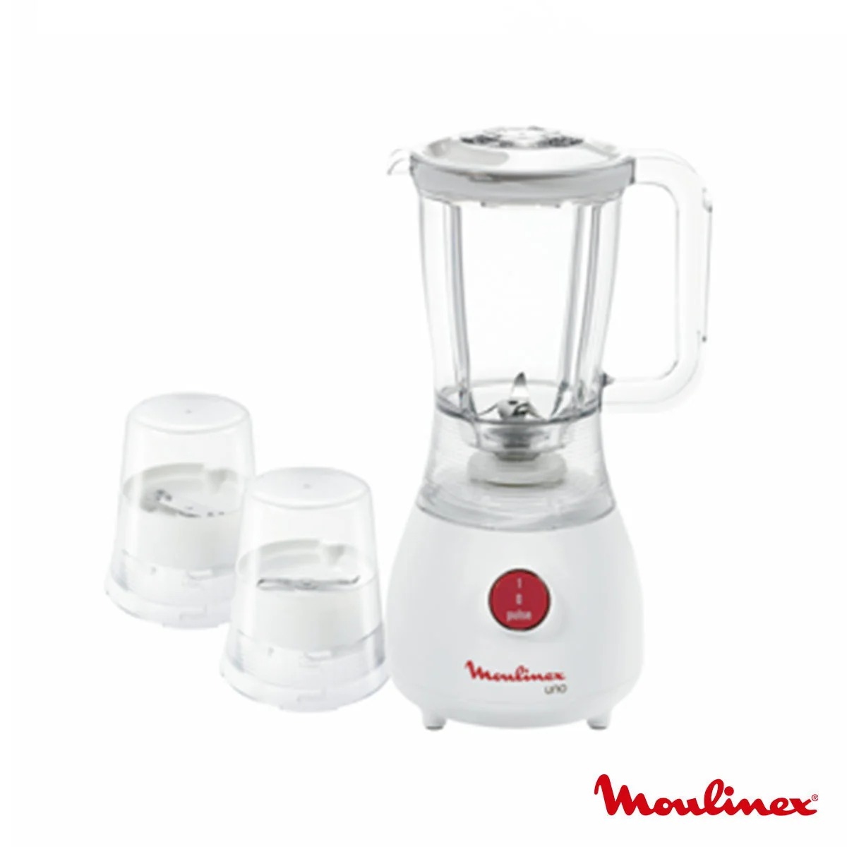 مخلوط کن دو کاره مولینکس با یک سرعت ثابت و عملکرد پالس کار میکند. دکمه پالس برای کنترل دقیق در مواقع حساس مانند خرد کردن یخ یا آسیاب ادویه، بسیار مفید است. علاوه بر این، دو عدد سری آسیابکن همراه دستگاه عرضه میشود که برای پودر کردن قهوه، زیره یا خشکبار عالی هستند.
