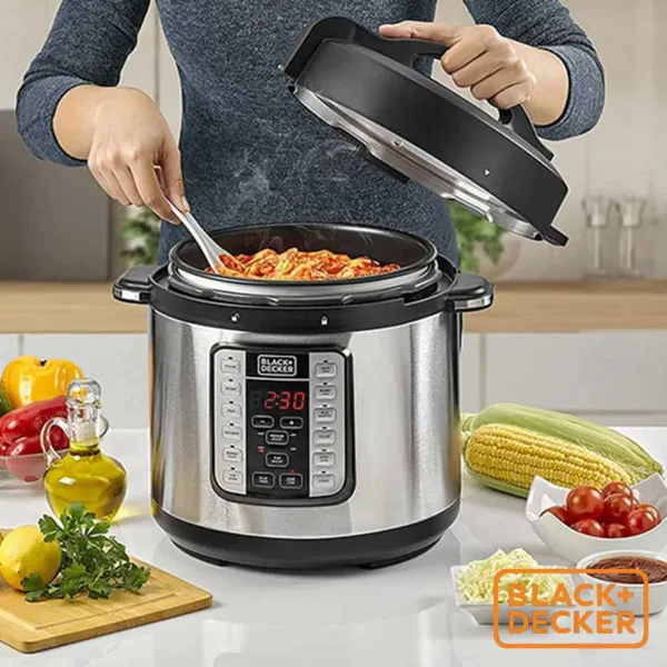 مولتیکوکر بلک اند دکر PCP1000 ظرفیت ۶ لیتر دارد و برای تهیه غذا برای ۶ تا ۸ نفر مناسب است. این حجم کافی باعث میشود بتوانید وعدههای روزانه خانواده را آماده کنید یا برای مهمانیهای کوچک، غذاهای متنوع را به راحتی بپزید. عمق مناسب ظرف داخلی، توزیع یکنواخت حرارت و بخار را تضمین میکند و باعث میشود هر وعده غذایی به طور کامل و سریع آماده شود.