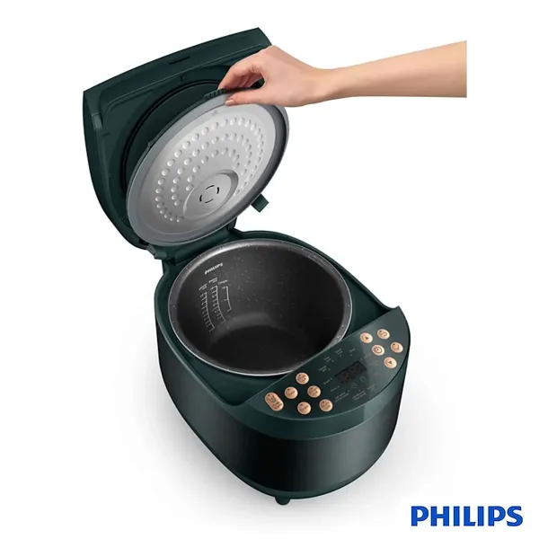 آشپزی لذتبخش و آسان دیگر نیاز به تلاش زیاد و تجهیزات متعدد ندارد. با پلوپز چندکاره فیلیپس HD4518 میتوانید در کوتاهترین زمان، غذاهایی خوشمزه، سالم و متنوع آماده کنید. این پلوپز با طراحی مدرن و رنگ سبز تیره جذاب، نه تنها جلوهای زیبا به آشپزخانه شما میبخشد، بلکه با تکنولوژیهای پیشرفته و قابلیتهای متنوع، تجربهای متفاوت از پخت و پز را فراهم میکند.