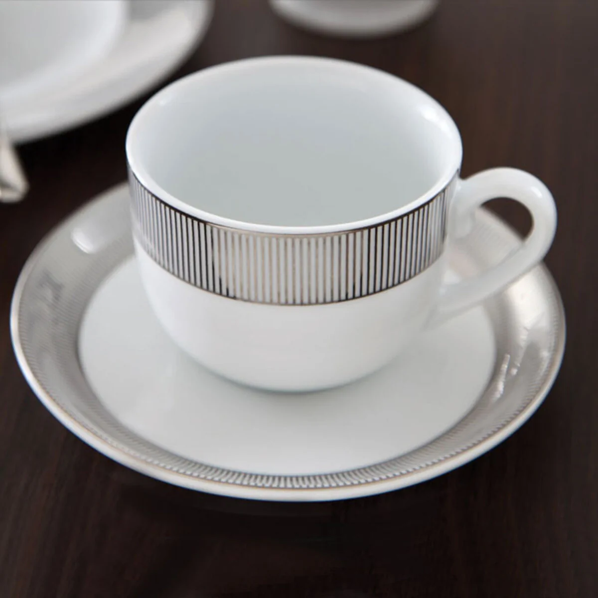 سرویس چای خوری پالادیوم چینی زرین 12 پارچه با الهام از سبک های مدرن ایتالیایی طراحی شده است. این محصول دارای خطوط منحنی و هندسی است و روی لبه فنجان و نعلبکی های آن طرح هایی با رنگ مشکی به چشم می خورد.