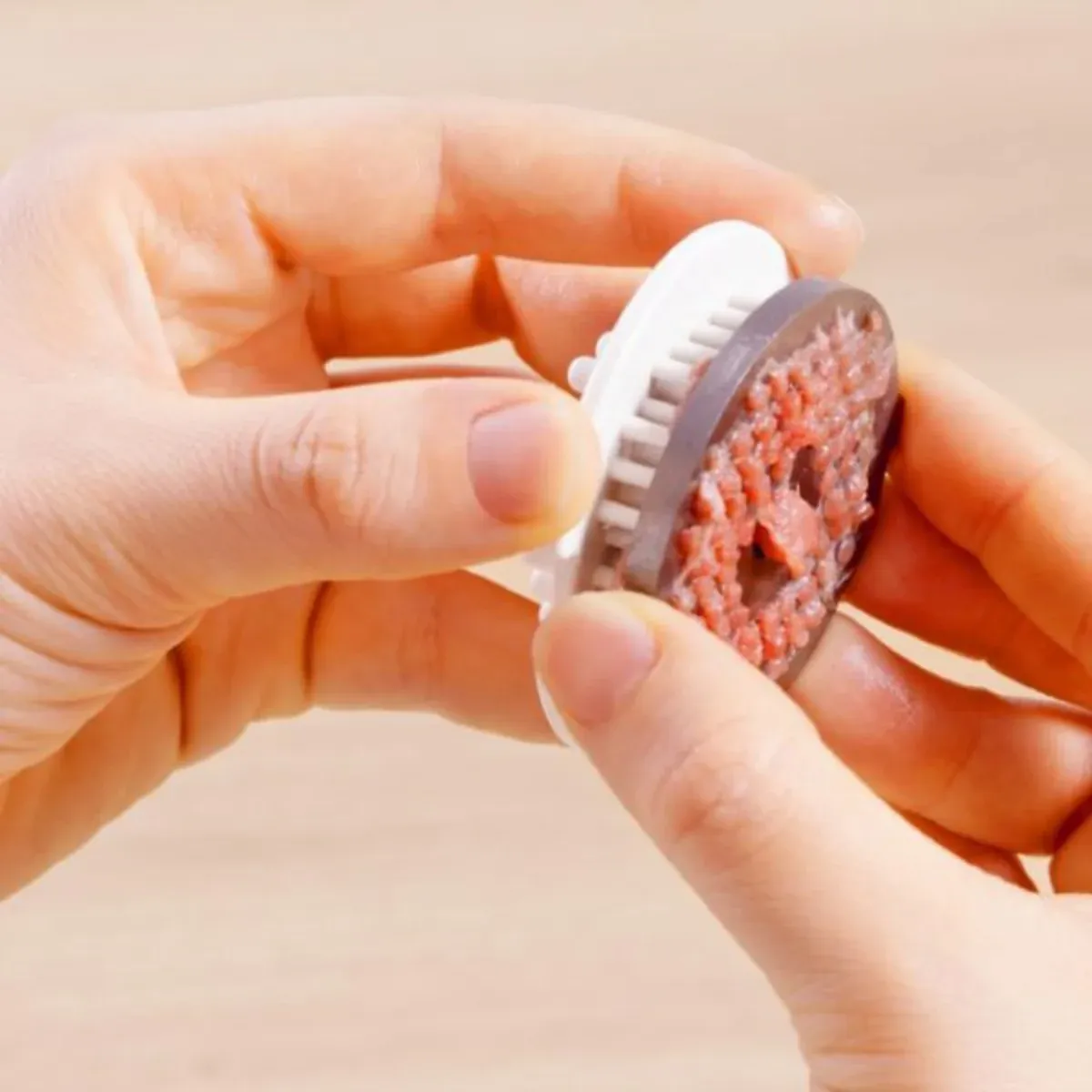 دستگاه همراه سه دیسک شبکهای از جنس استیل ضد زنگ در اندازههای ریز، متوسط و درشت دارد تا بافت گوشت را دقیقا متناسب با سلیقه و نیاز خود انتخاب کند.