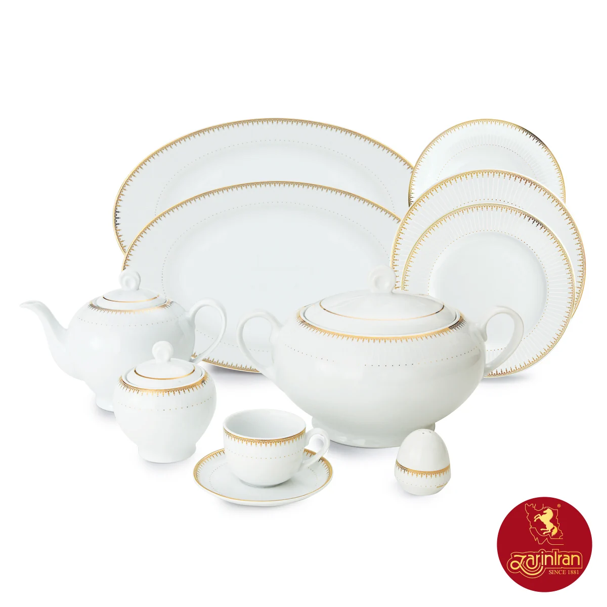 سرویس چینی زرین ایتالیا اف سپیدار 12 نفره 102 پارچه