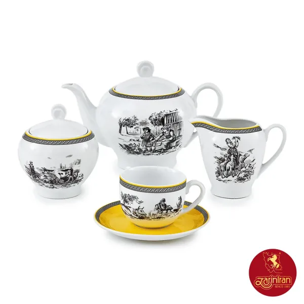 سرویس چای خوری چینی زرین ایتالیا اف طرح ویلیج 17 پارچه