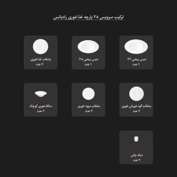 سرویس چینی رادیانس 6 نفره سفید چینی زرین 28 پارچه