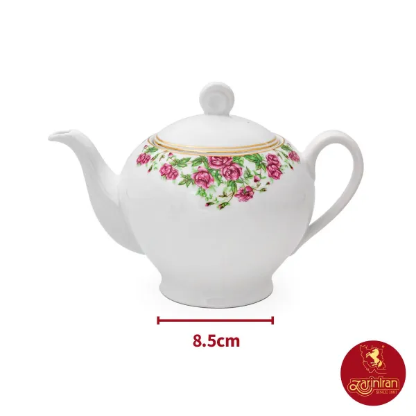قوری چینی زرین ایتالیا اف طرح بیدگل سایز 8 - گل سرخی