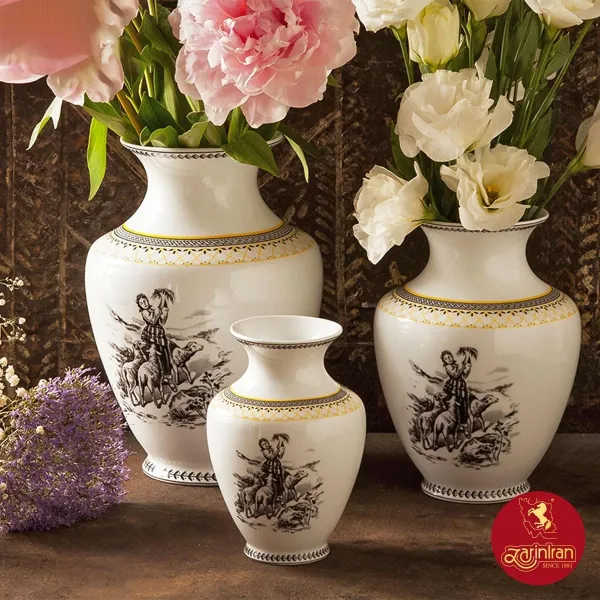 گلدان چینی زرین رعنا طرح ویلیج سایز 18 متوسط