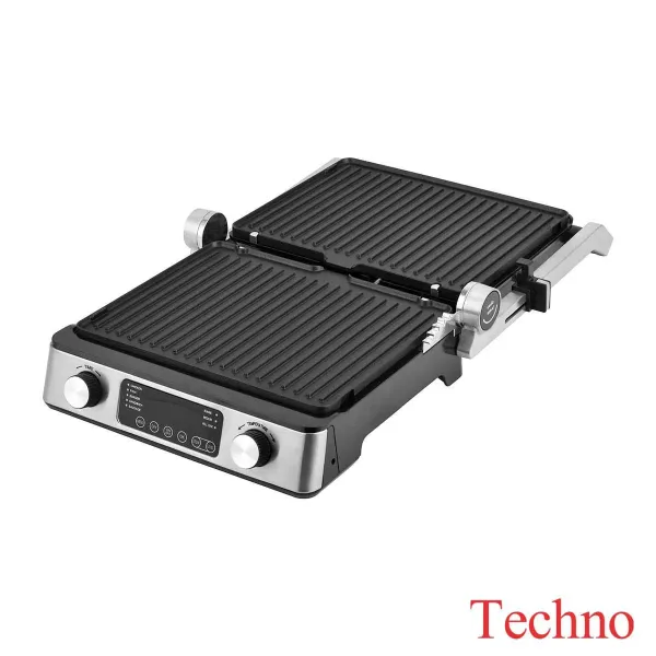 در نگاه اول، توان 2000 وات این گریل نشان میدهد که با دستگاهی قدرتمند روبهرو هستیم. این قدرت بالا باعث میشود صفحات در کمترین زمان داغ شوند و غذا به شکل یکنواخت و حرفهای بپزد. وجود صفحه نمایش دیجیتال لمسی، کنترل دقیق دما و زمان را فراهم کرده و باعث میشود بتوانی هر نوع غذایی از استیک گرفته تا سبزیجات را در بهترین حالت آماده کنید.