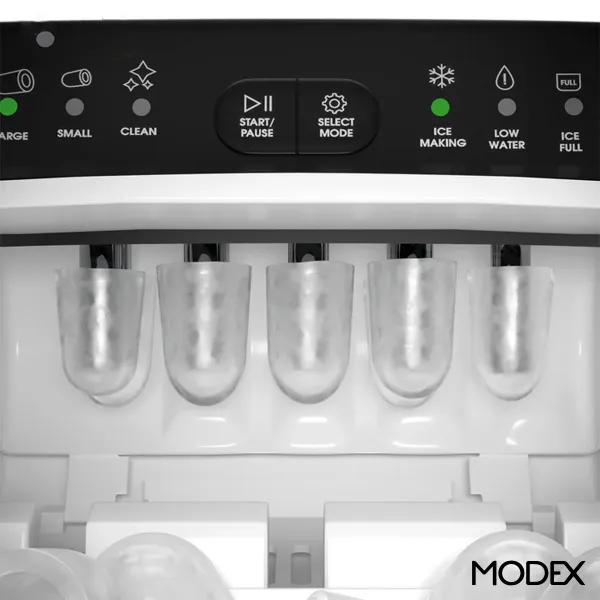 ممکنه فکر کنید دستگاههای دیجیتال پیچیدهاند، ولی کمپانی مودکس با بهره گیری از تکنولوژی روز دنیا کار با یخساز مودکس ICM110 رو بسیار ساده و کاربرپسنده کرده. با یک پنل کنترل دیجیتال، میتونید به راحتی تنظیمات رو انجام بدید. کافیه مخزن 2.8 لیتری رو با آب پر کنید، دکمه رو بزنید و صبر کنید تا یخهای شما آماده بشن. حتی اگر آب مخزن کم بشه، دستگاه به شما هشدار میده، پس نیازی نیست دائم حواستون بهش باشه.
