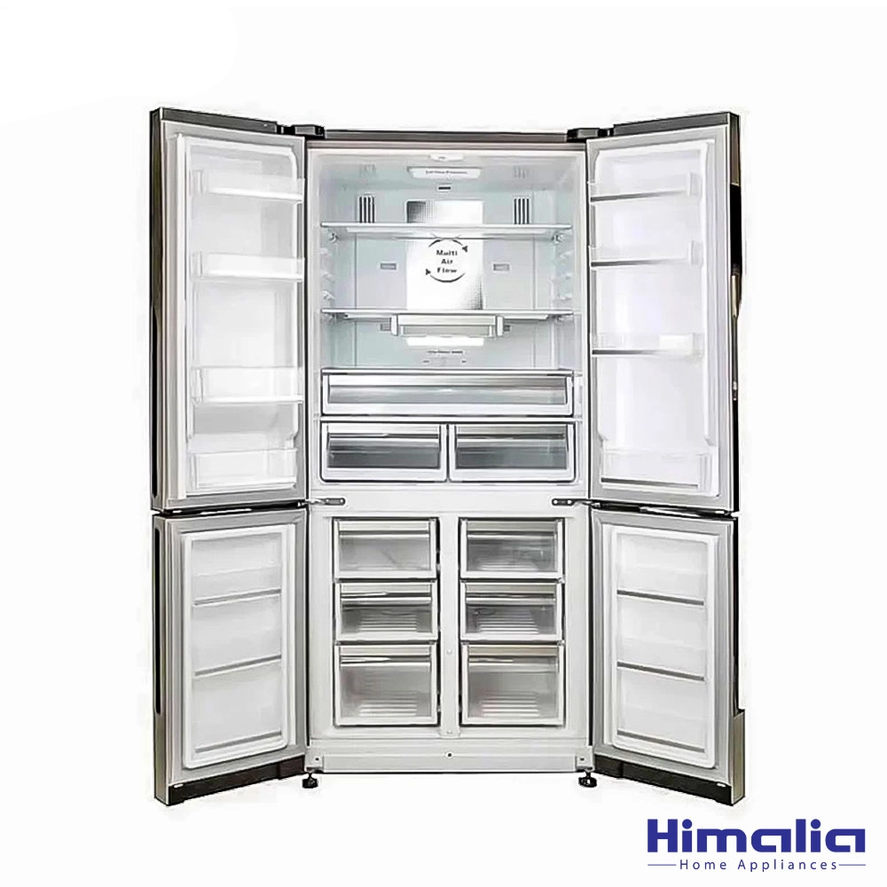 یکی از امکانات جالب یخچال فریزر هیمالیا، سیستم آبریز اتوماتیک همراه با یخساز خودکار است. این سیستم به مخزن آب شهری متصل میشود و به صورت خودکار آب سرد و یخ تولید میکند، بدون نیاز به پر کردن دستی.