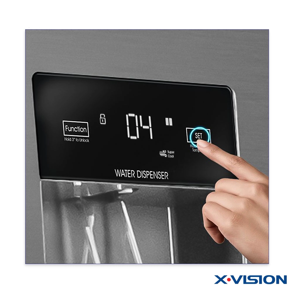 برای مدیریت بهتر عملکرد یخچال، یک کنترل پنل دیجیتال روی بدنه دستگاه تعبیه شده است. این پنل امکان تنظیم دما، فعالسازی حالتهای مختلف سرمایش و مشاهده وضعیت کلی دستگاه را فراهم میکند. طراحی مدرن و لمسی این پنل، علاوه بر زیبایی، کاربری آسانی را نیز به همراه دارد.