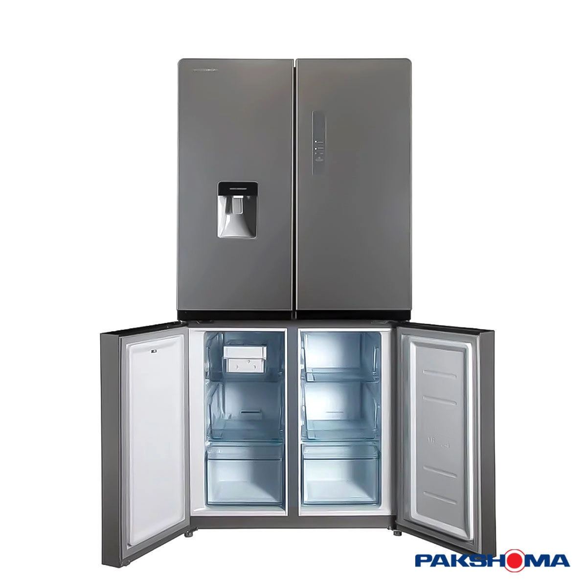 یخچال فریزر چهار درب پاکشوما با طراحی مدرن و خطوط شیک، ظاهری لوکس به آشپزخانه میبخشد. رنگبندی زیبا، دستگیرههای خوشدست و طراحی متقارن، همه نشاندهنده توجه ویژه برند پاکشوما به جزئیات است.
