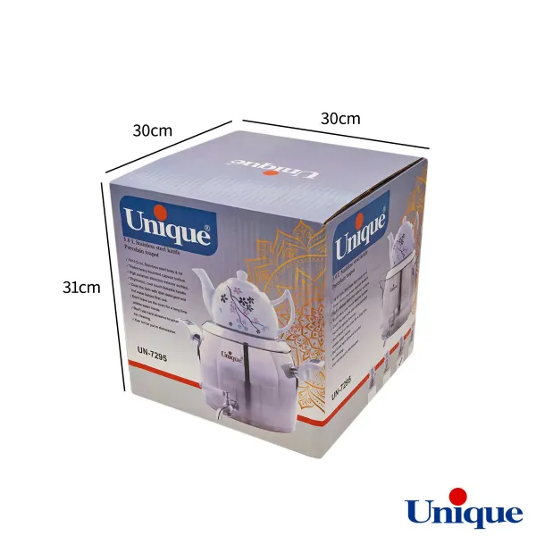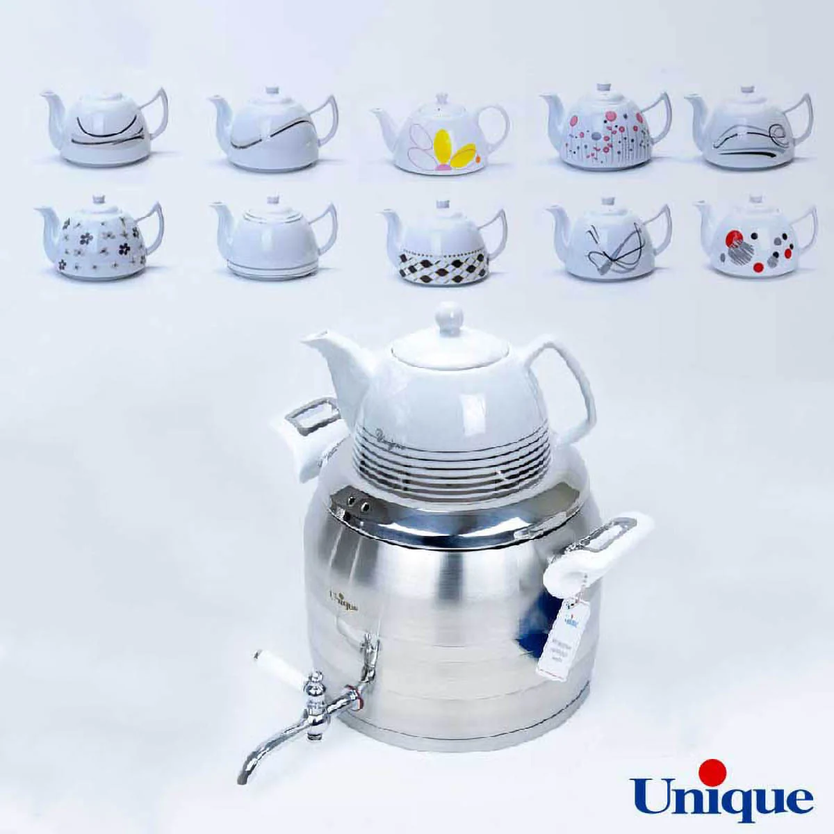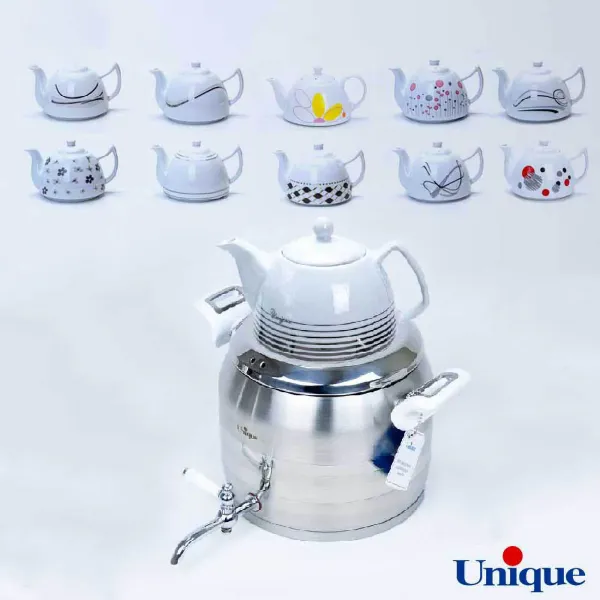 کتری استیل 5 لیتر با قوری چینی طرح ترک یونیک UN-7295 دسته کالیت نسوز